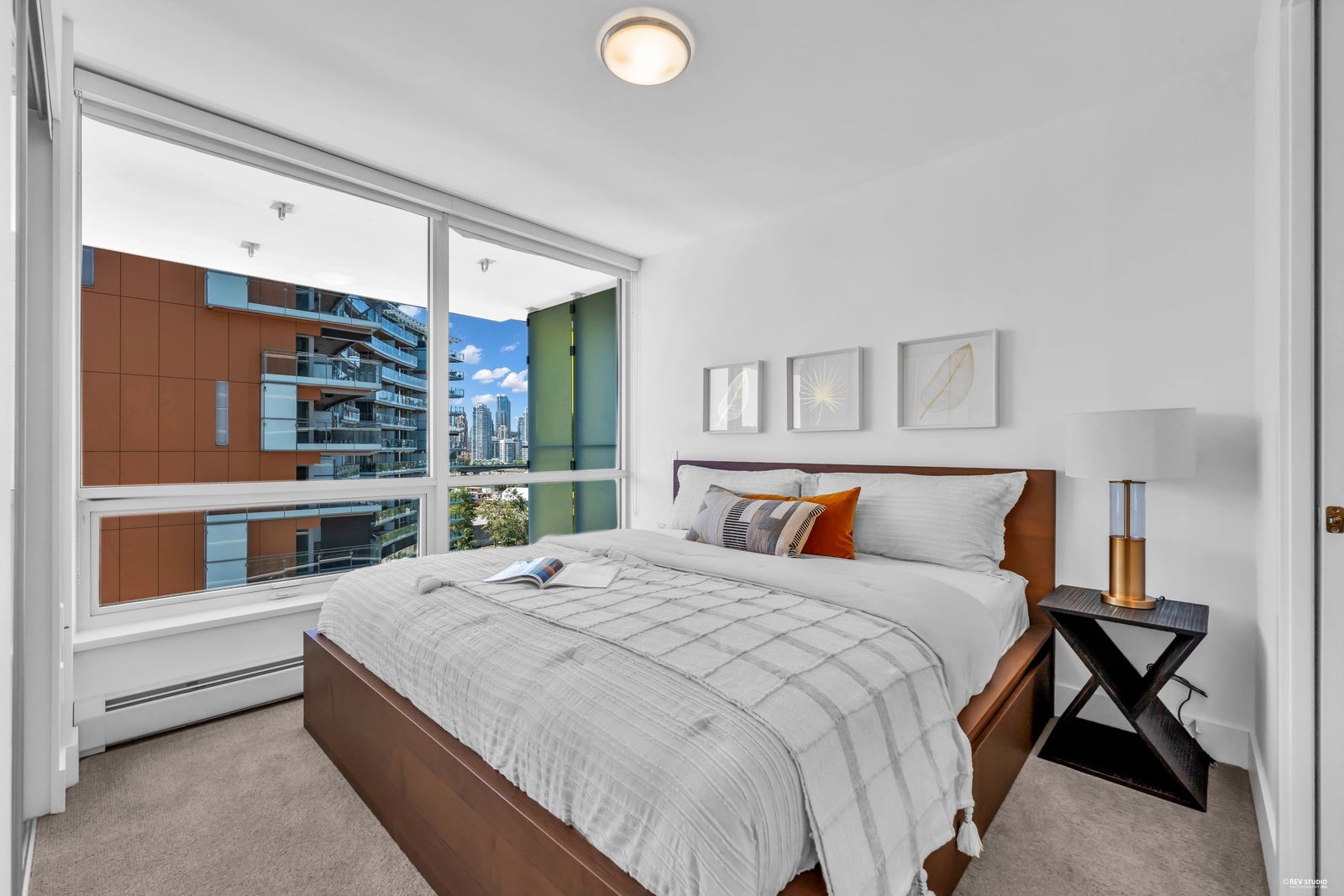 EPIC AT WEST - OLYMPIC VILLAGE has the convenience of living in DOWNTOWN without the noise. This perfect ßoor plan 2 bed&2 bath + DEN maximizes all 981 sq ft and features ßoor-to-ceiling windows framing expansive views on the southwest corner. The extra large primary ensuite boasts two vanity sinks & a spacious shower. Enjoy a quick 5-min walk to the Canada Line or a 10-min walk to Expo Line. Steps to one of the largest outdoor seaside patios, upscale retail, 1 kilometre of seawall that connects to Vancouver’s over 20 kilometre pedestrian/bicycle route. Pet & Rental friendly. 1 parking & 1 storage locker.