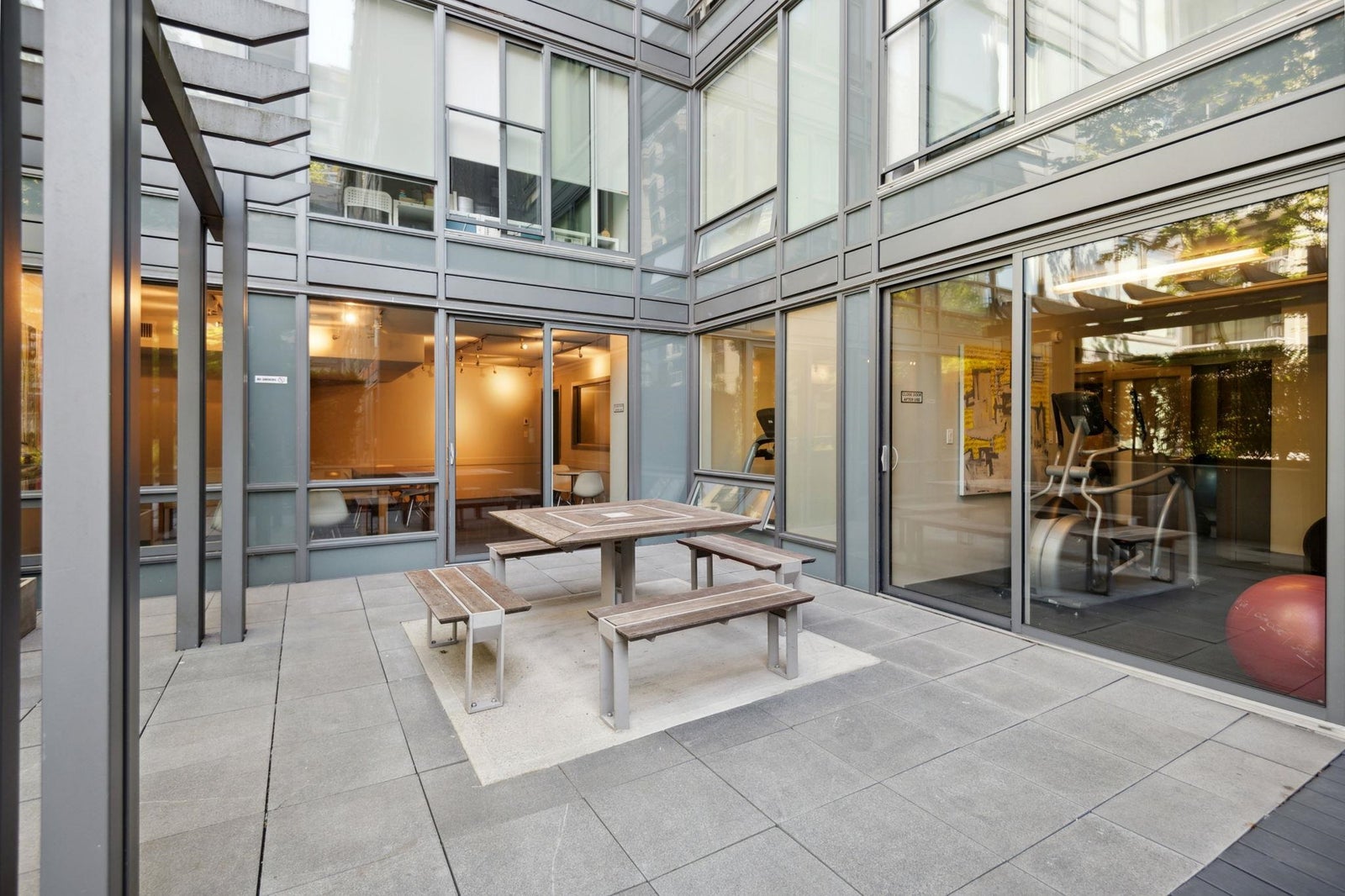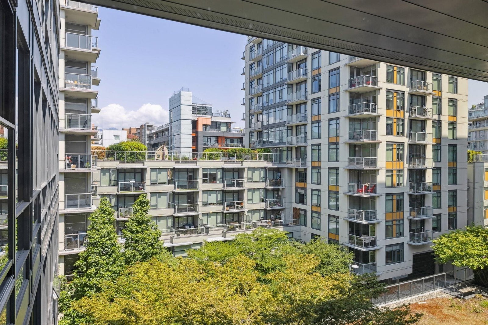 Discover urban living at its finest in this well maintained 2-bedroom + den, 1-bathroom condo at Residences at West. Tucked away on the quiet side of the building, this unit overlooks a tranquil courtyard, providing a peaceful retreat. Enjoy the convenience of 1 parking spot and 1 locker, along with pet-friendly policies allowing up to two pets (cats or dogs) weighing 40 lbs each. Located in the heart of Olympic Village, you're steps from shops, restaurants, parks, and recreational activities, with easy access to transit, the sea bus, and the scenic seawall. This well-maintained home features modern finishes, combining comfort and style for the ultimate lifestyle experience. Disclaimer: Photos virtually staged