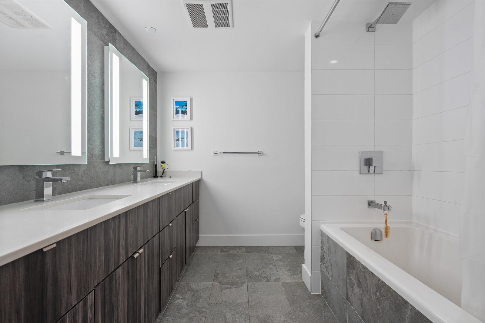 Spacious and functional- 1 bed + flex + den + view! in Olympic Village with city, mountain & water views. This bright, open-concept, Airbnb-friendly home features floor-to-ceiling windows, German wide-plank flooring, and sunny SW exposure. The gourmet kitchen offers high-gloss cabinetry, induction cooktop, and stainless steel appliances. Generous primary suite with spa-inspired ensuite, double sinks, ample storage, and soaker tub. Enjoy a sunny balcony perfect for BBQs. Epic at West amenities include a fitness centre, 8,500 sq.ft. rooftop patio, concierge, clubhouse, and dog spa. Steps to the Canada Line, seawall, restaurants & shops. Parking & storage included. Tenanted 24 hours’ notice required.OPEN HOUSE SUN MAR 15- 2-4PM
